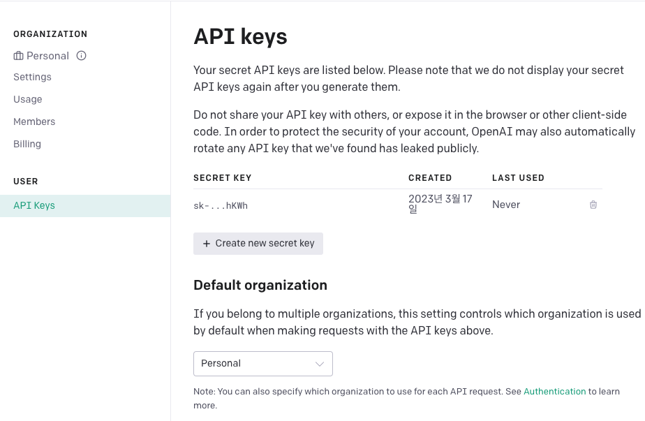 API key 등록하기